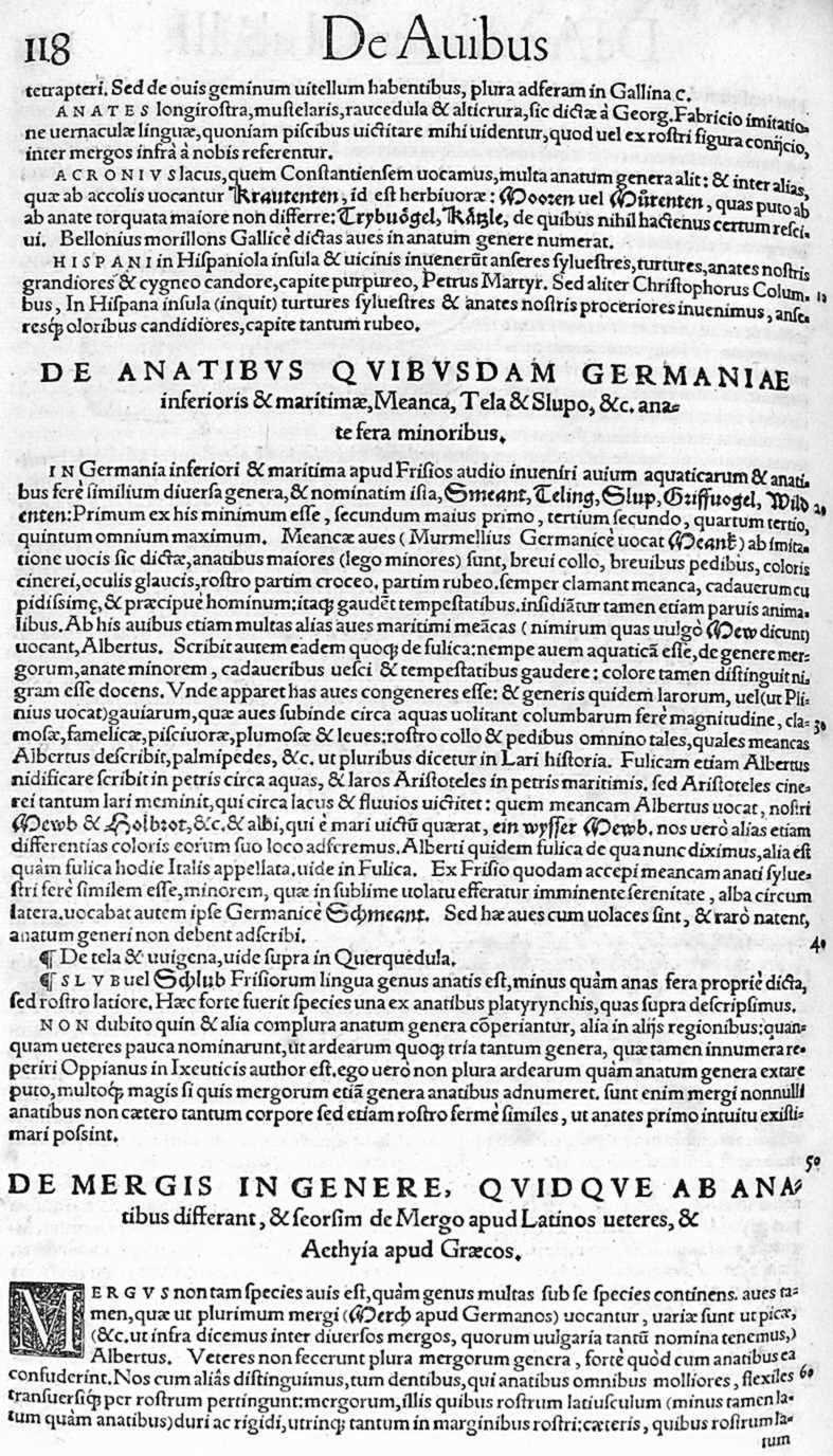 de Avium natura 118 de aliis quibusdam Anatibus de Anatibus quibusdam Germaniae de Mergis in genere