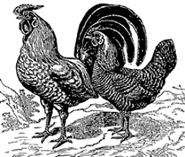En Angleterre, où elle est fort répandue, on la considère comme une variété de la race de Hambourg, avec laquelle [151] elle a, en effet, énormément de ressemblance. Elle tire son nom de la localité où on la cultive le plus; mais hâtons-nous d’ajouter que les volailles de cette race qui nous viennent de Hambourg, de la Belgique et de la Hollande, sont d’une médiocrité déplorable, comparativement à celles qu’on rencontre en Angleterre, où des amateurs sérieux et intelligents ont amélioré la race et l’ont portée à son plus haut degré de perfectionnement, au moyen d’un choix judicieux des oiseaux reproducteurs. |