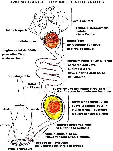 Il guscio comincia a formarsi nell'istmo, ma inizia a delinearsi non appena l’uovo giunge in utero. Può darsi che la sua produzione prosegua per tutto l’arco di tempo che intercorre fra l’inizio dell’apposizione calcarea e il momento dell’ovodeposizione. Tuttavia i dati concordano sul fatto che l’uovo è rigido già 13 ore prima di essere deposto.