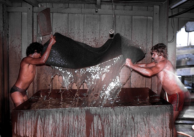 Rituale propiziatorio alla fine del lavaggio di un carpete Dieci colpi sull'acqua a tutta superficie