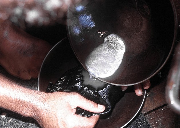 Travaso dell'amalgama in uno straccio a bassa porosità