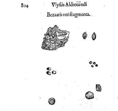 Dal latino medievale bezoar, adattato del persiano padzähr o badzähr, da pad = protezione contro + zähr = veleno. Quindi: contraveleno. Corpo estraneo, detto anche egagropilo - dal greco aígagros, capra selvatica + pîlos, feltro o peli ammassati - che si rinviene negli stomaci dei ruminanti (e talvolta anche in quello dell'uomo). Sono formazioni rotondeggianti od ovalari che si formano quando gli animali, leccandosi, ingeriscono peli (pilobezoar) o fibre vegetali (fitobezoar).