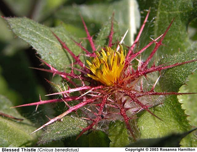 Folk medicine utilized blessed thistle tea for digestive problems, including gas, constipation, and stomach upset. This herb was also used for liver and gallbladder diseases, in a similar way as its well-known relative, milk thistle. Monks once grew blessed thistle as a cure for small pox. Early herbalists believed that the herb was a cure-all. They noted that the plant could both prevent and cure headache, provoke sweat, help memory, strengthen the heart and stomach, and cure external problems such as festering sores, boils, and the itch. Nineteenth century herbalists prescribed an infusion, or tea, made from the plant tops as a treatment for fevers and for liver and respiratory ailments.