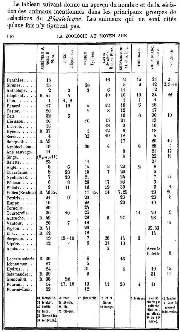 In the twelfth and thirteenth centuries there appeared the Bestiaires of Philippe de Thaun, a metrical Old French version, edited by Thomas Wright in Popular Treatises on Science Written during the Middle Ages (74-131), and by Walberg (Lund and Paris, 1900); that by Guillaume, clerk of Normandy, called Bestiare divin, and edited by Cahier in his Mélanges d'archéologie (II-IV), also edited by Hippeau (Caen, 1852), and by Reinsch (Leipzig, 1890); the Bestiare of Gervaise, edited by Paul Meyer in Romania (I, 420-42); the Bestiare in prose of Pierre le Picard, edited by Cahier in Mélanges (II-IV).