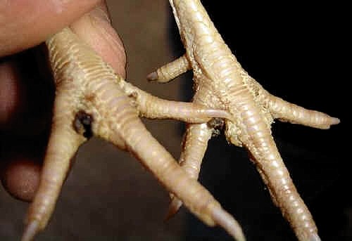 Cracked or traumatized skin is susceptible to bacterial colonization, which can lead to abscess formation. In more severe cases, there can be as ulcer formation on the pads of the feet, chronic abscessation, and infection of the bones of the feet. Once infection spreads to the bones and joints, birds become severely lame, and surgery is required if there is to be any chance of recovery.