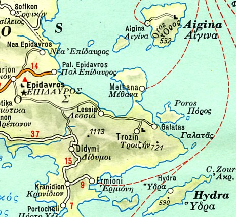 grafia č Troizëna, traslitterata in Trizína. Nonostante si trovi nel Peloponneso, č stata fagocitata, come Methana