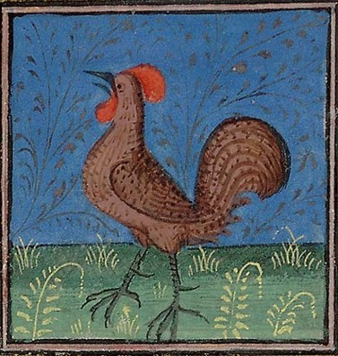 "Cock crows at dawn and dusk, which are like both day and night together; this is like love which is neither all hope nor all despair. But the writer is near despair, and has no more hope of his lady's love, so he must sing loudest at the last, just as the cock who sings oftenest at dawn and in the day, must force himself to sing even louder at night."