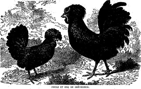 Variété de Pavilly . – Dans la Seine-Inférieure, près de Pavilly, on trouve une autre population [65] galline qui a de nombreux points de ressemblance avec la race de Crèvecœur. |