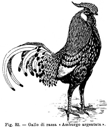 2) RAZZA D’AMBURGO – (Gallus Hamburgensis, franc. race de Hambourg, ted. die Hamburger Race, ingl. Hamburgs) – Questa graziosissima ed elegante razza è essenzialmente inglese, poiché da qualche secolo in qua venne sempre coltivata in Inghilterra; ma quasi tutti gli autori sono d’avviso ad elencarla fra le razze fiamminghe, e ne darò le ragioni.