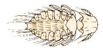 Adulto: la forma è simile a quella di un granchio (nei paesi anglosassoni è infatti chiamata crab) e vive per circa due settimane sull'ospite, riproducendosi e nutrendosi.